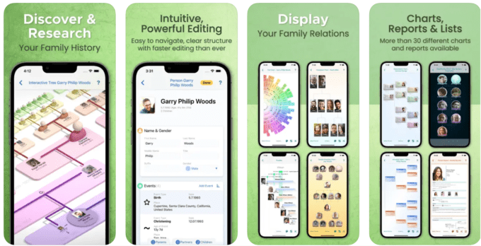 Pomocou aplikácie MobileFamilyTree 10 objavíte svoj rodokmeň. Preskúmajte svoj rodokmeň a históriu svojej rodiny spôsobom, ktorý by ohromil generácie kronikárov pred vami. Vytvárajte vizuálne pôsobivé grafy, hodnotenia a knihy, prechádzajte 3D zobrazením interaktívneho rodokmeňa alebo virtuálneho stromu.