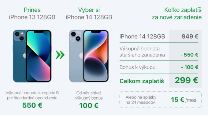 Výpočet výkupnej hodnoty iPhonu 14 od 299 €: