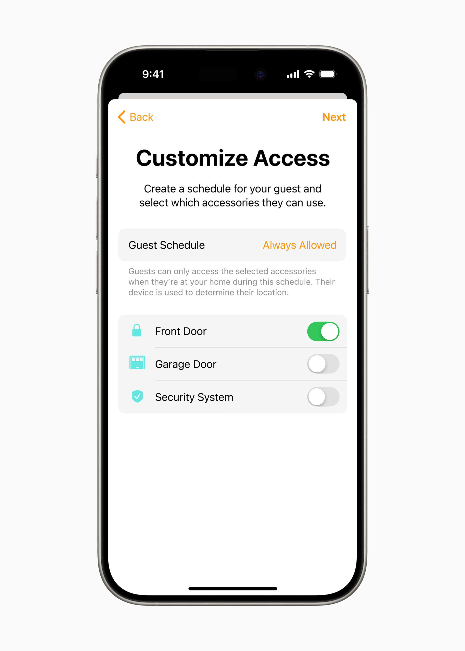Novinkami nabitá bude aj aplikácia Domácnosť v systéme iOS 18. Prináša hosťovský prístup, s ktorým môžete svojim hosťom udeliť dočasný prístup k zámkom, garážovým dverám a ďalším bezpečnostným prvkom. Okrem udelenia prístupu môžete hosťom nastaviť konkrétne časy prístupu, čo je praktické napríklad pre rodiny s opatrovateľkami alebo ľudí a firmy, ktoré si platia upratovačky. Rovnako tak môžete u hostí sledovať históriu aktivity. Čerešničkou na torte je automatické odomykanie dverí, ak ste v dosahu 6 stôp (1,8 metra).
