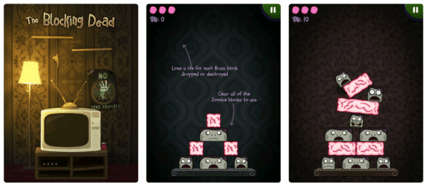 The Blocking Dead je zombie logická hra. Jej cieľ je jednoduchý, zničte zombie a dávajte pozor, aby vám nespadol žiadny mozog na zem.