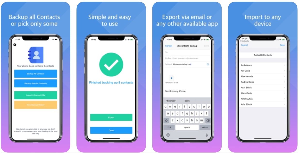 Pomocou aplikácie Backup My Contacts Easy môžete jednoducho zálohovať a obnoviť všetky vaše kontakty.