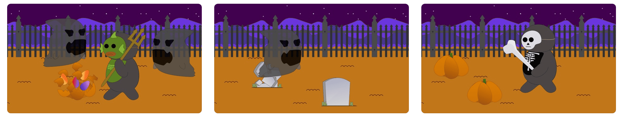 Presekajte si cestu cez 3 rôzne cintoríny a za ušetrené bonbóny si nakúpte nové kostýmy a zbrane.