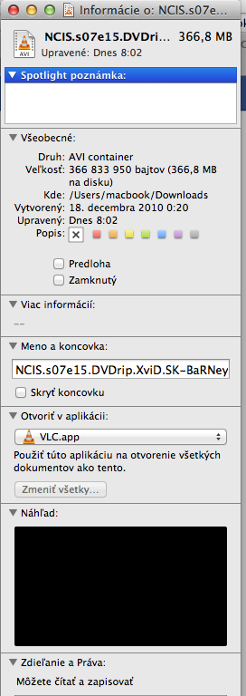 Klikni pravým na .mkw daj informácie, zvol otvoriť v aplikácii VLC.app a pod tým máš hneď aj vetu: Použiť túto aplikáciu na otvorenie všetkých dokumentov ako tento: a klik na zmeň všetky. Vyskočí ti okno či to chceš naozaj zmeniť, dáš áno a máš to…