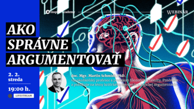 Lepší argument v hrsti ako dojmy na streche! Ako vyzerá umenie argumentácie a ako sa vyhnúť chybám v debate prezradí v stredu 2. februára v online prednáške odborník v tejto oblasti. Martin Schmidt priblíži svet kritického myslenia a ukáže, ako správne argumentovať. Návštevníci si budú môcť osvojiť mechanizmus vyjednávania, presvedčovania a zdôvodňovania, ktoré vynikajú logickou správnosťou, relevantnosťou a inšpiratívnosťou.