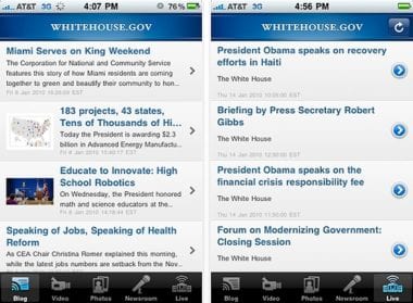 pokračovanie článku Najnovšie dianie z Bieleho domu v iPhone, Obamov kolektív modernizuje22. januára 2010pridaj komentár Bezplatná aplikácia The White House prináša podrobné informácie o dianí v Bielom dome. Najnovšíe blogové príspevky, tlačové správy, fotografie, videá…