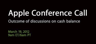 pokračovanie článku Čo spraví Apple so svojou finančnou rezervou?19. marca 201211 komentárov Dnes o 14:00 nášho času Apple uskutoční mediálny konferenčný hovor, kde oznámi, kam sa chystá investovať svoje peniaze. Tim…