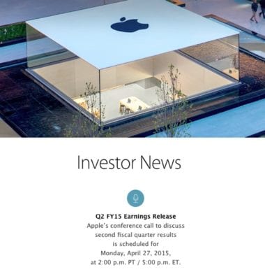 pokračovanie článku Apple oznámi najnovšie finančné výsledky koncom apríla1. apríla 2015pridaj komentár Prvý kalendárny kvartál tohto roku už máme oficiálne za sebou, a tak sa blíži aj pravidelné oznamovanie finančných výsledkov…