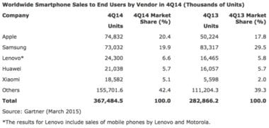 pokračovanie článku Apple bol v štvrtom kvartáli 2014 najväčším výrobcom smartfónov na svete4. marca 2015pridaj komentár iPhone dlhodobo patrí k najpredávanejším smartfónom na svete, avšak z hľadiska značiek patrí od roku 2011 prvé miesto Samsungu. Môže…