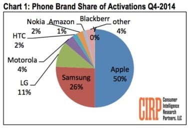 Apple logo mala až polovica smartfónov aktivovaných v poslednom kvartáli 2014